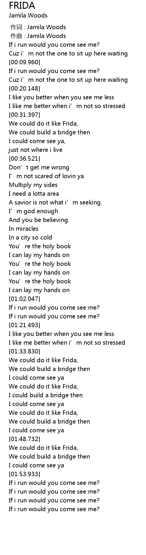 | [01:44.006] | We could do it like Frida, |