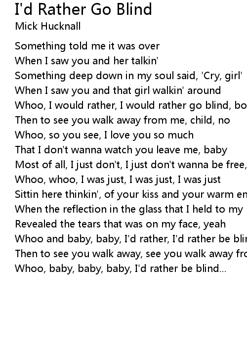 Whoo and baby, baby, I'd rather, I'd rather be blind, boy |