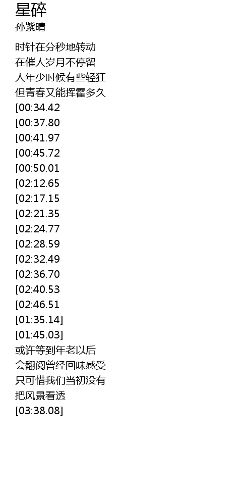| [02:51.60][02:17.15][00:56.64] | 满天星像似晶莹的泪水 |