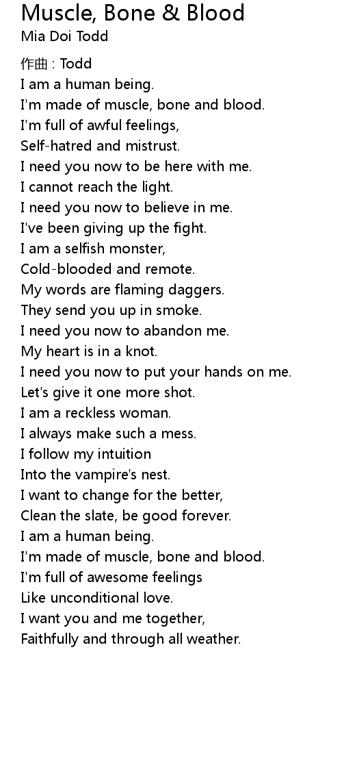 | 歌曲 | Muscle, Bone & Blood |