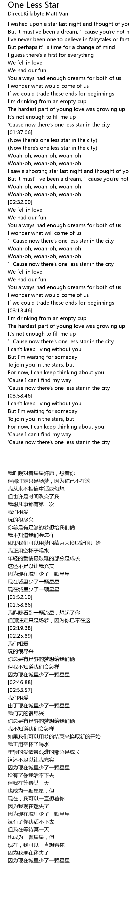 | [01:34.04] | 因为现在城里少了一颗星星 |