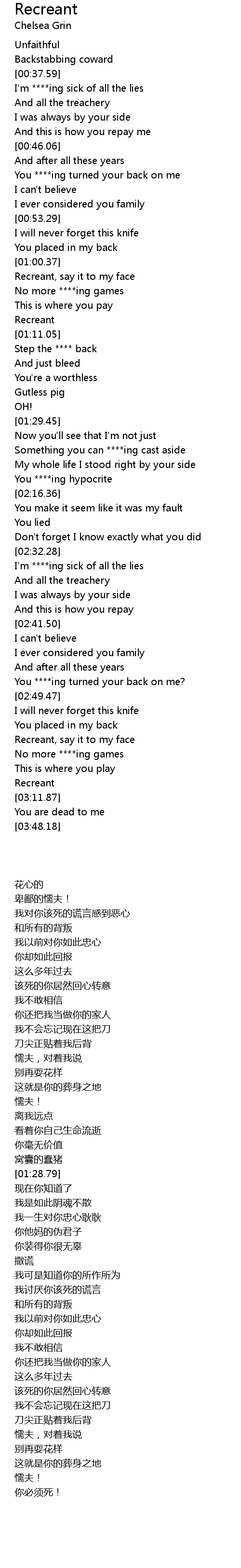 歌曲 Recreant