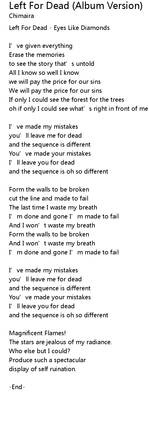 | Left For Dead Eyes Like Diamonds | |