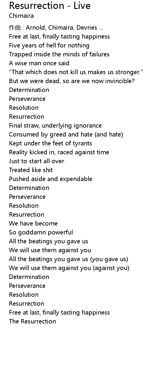 | 歌曲 | Resurrection - Live |