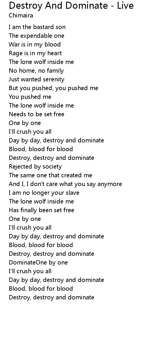 Destroy, destroy and dominate |