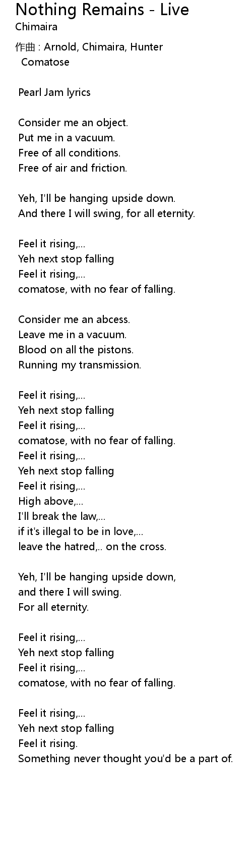 | 歌曲 | Nothing Remains - Live |
