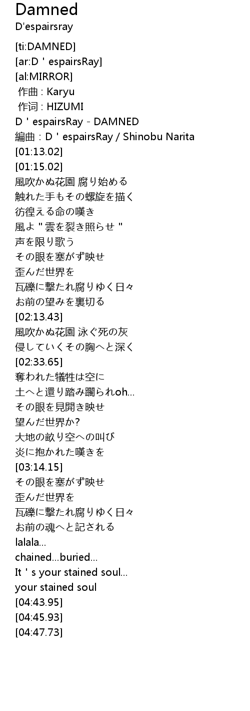 | [01:11.02] | biān qū: D espairsRay Shinobu Narita |
