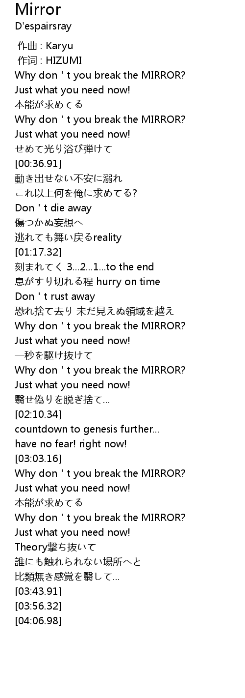 | [03:17.60] | Why don't you break the MIRROR? |