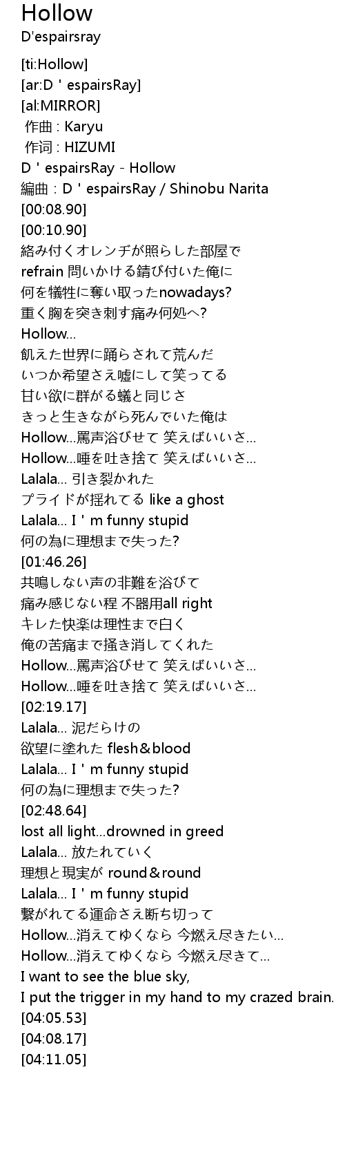 | [00:00.00] | D'espairsRay - Hollow |