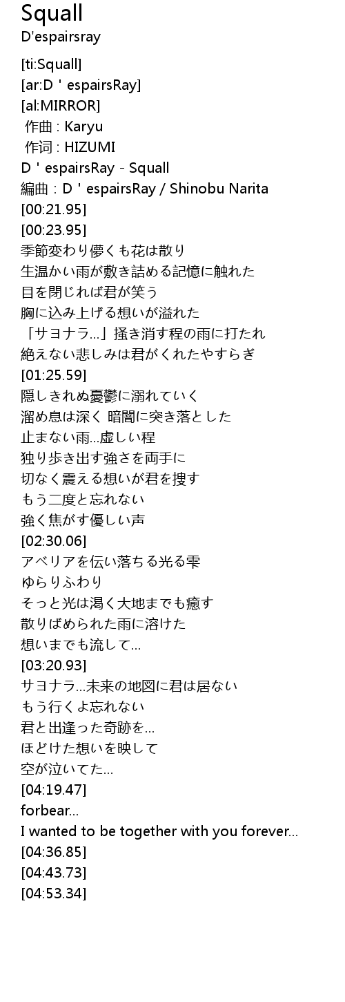 | [00:00.00] | D espairsRay Squall |