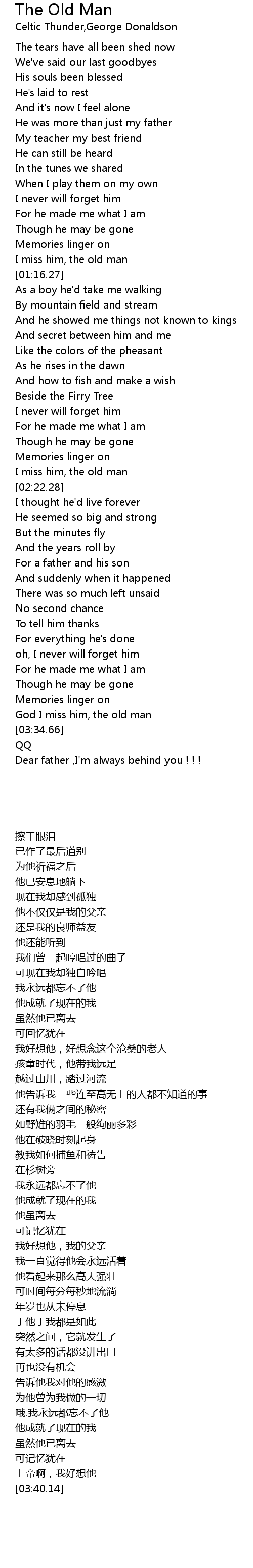 Dear father ,I'm always behind you ! ! ! |