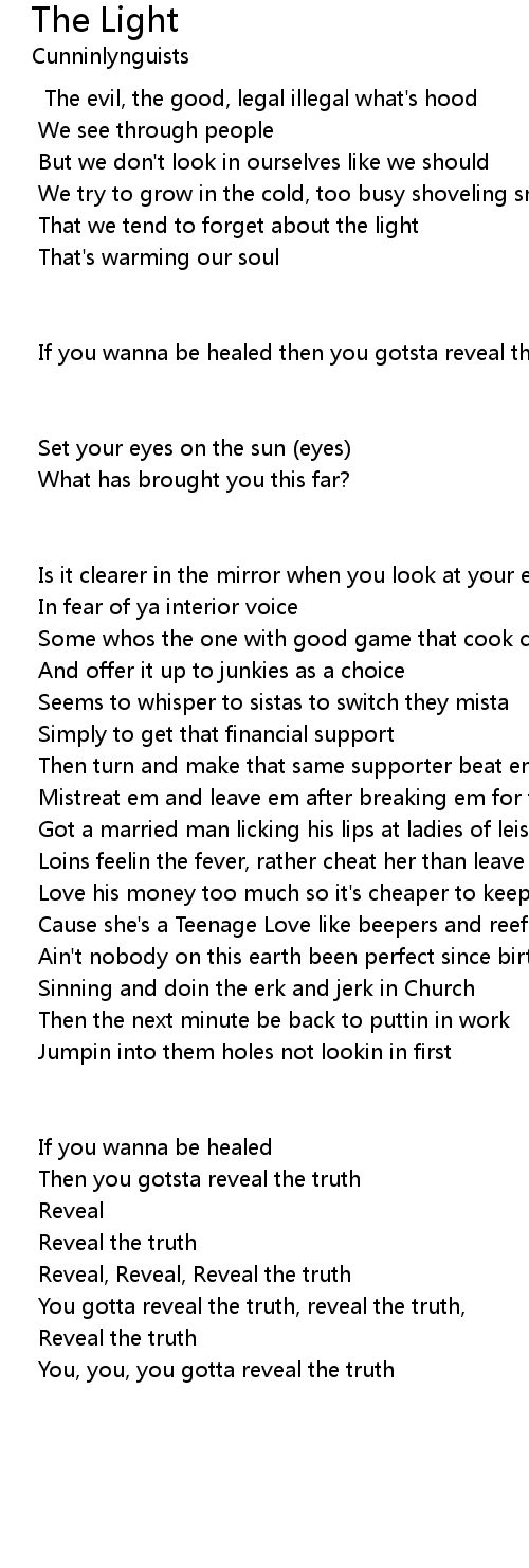 You gotta reveal the truth, reveal the truth, |