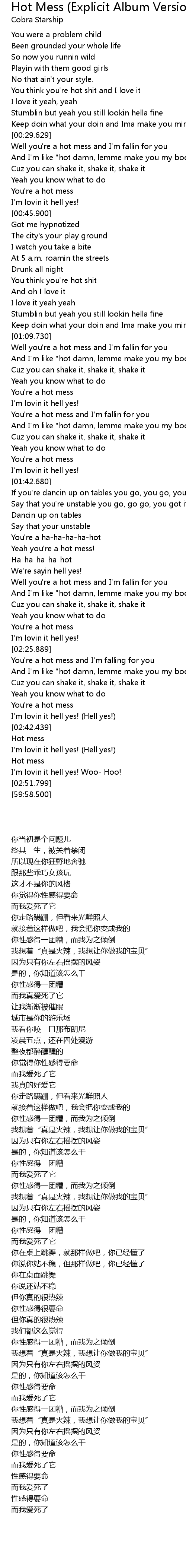 You're a hot mess and I'm fallin for you |