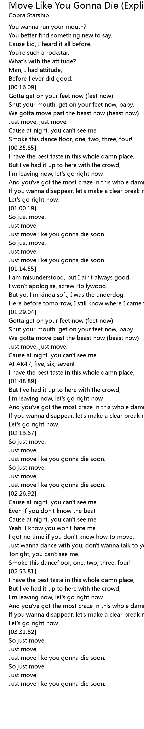 I got no time if you don't know how to move, |