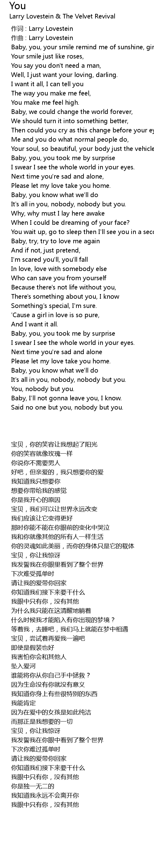 | [00:00.000] | 作词 : Larry Lovestein |