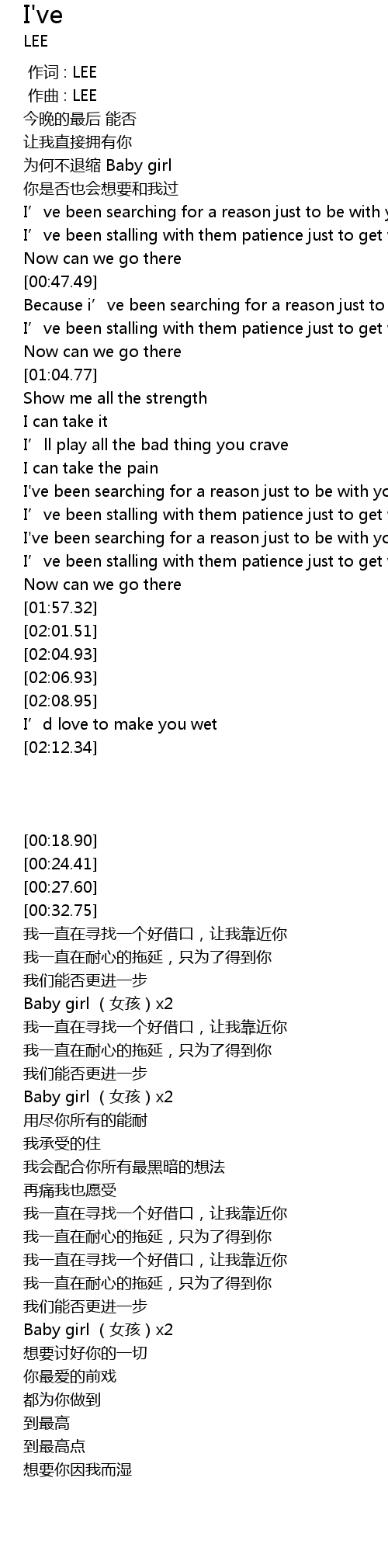 | [00:51.25] | 我一直在寻找一个好借口,让我靠近你 |