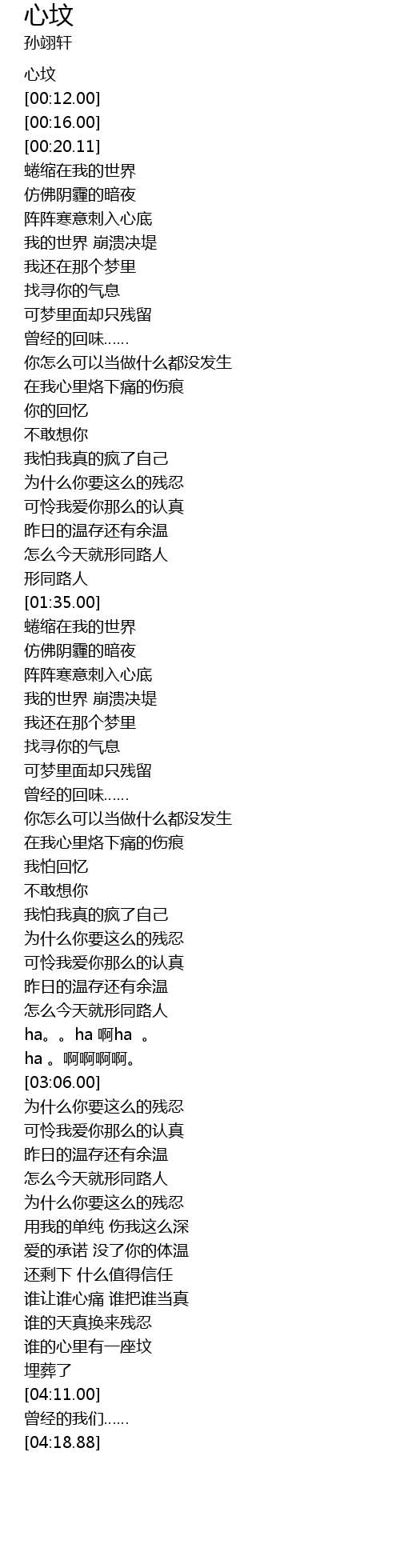 | [04:03.88] | shuí de xīn lǐ yǒu yī zuò fén |
