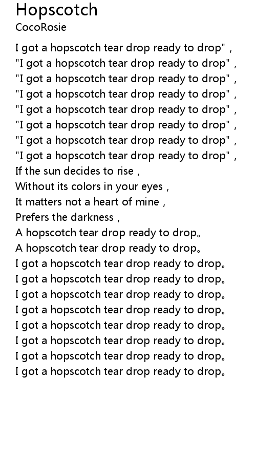 | [02:01.700] | A hopscotch tear drop ready to drop。 |