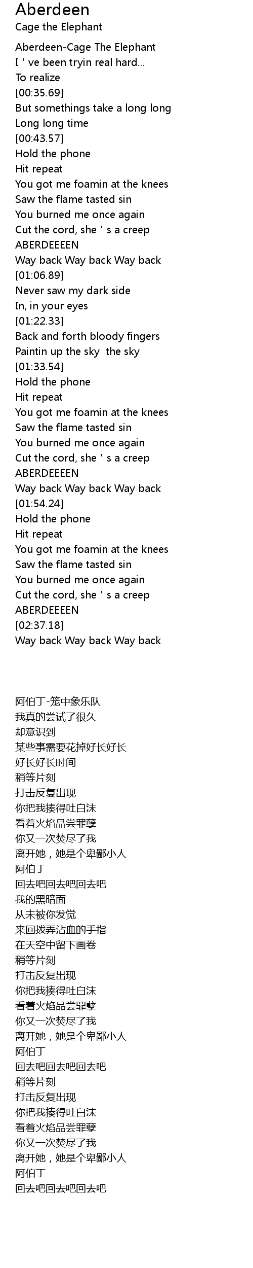 | [00:01.19] | Aberdeen-Cage The Elephant |