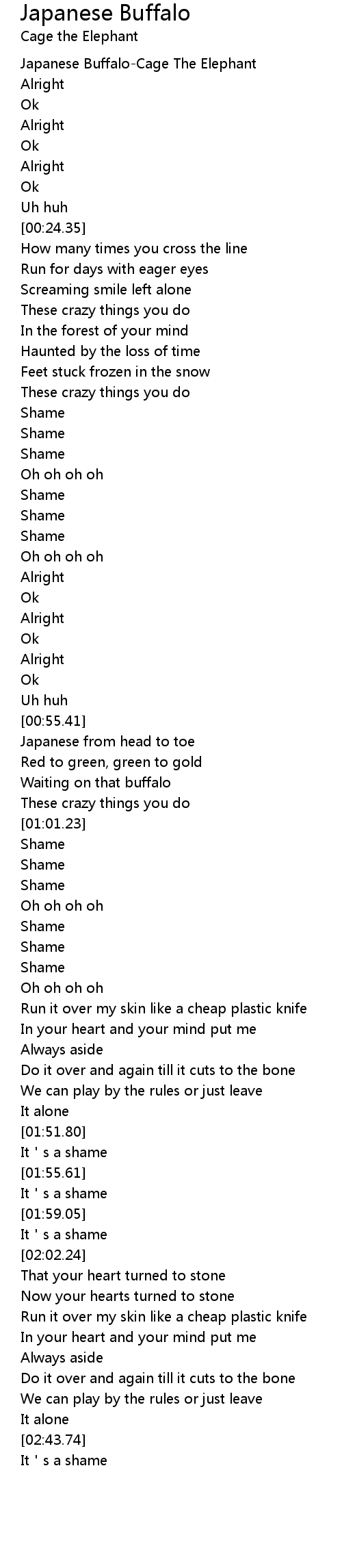 | [00:01.23] | Japanese BuffaloCage The Elephant |
