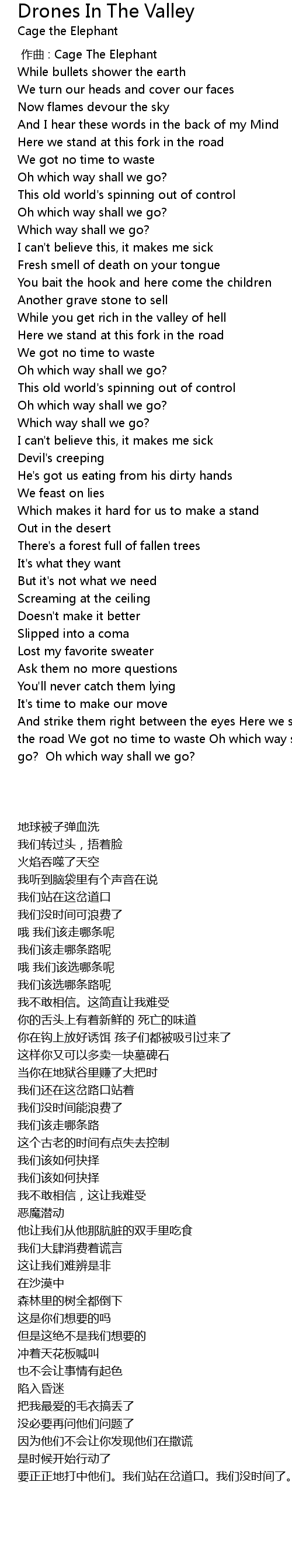| [02:10.53] | And strike them right between the eyes Here we stand at this fork in the road We got no time to waste Oh which way shall we go? Oh which way shall we go? Oh which way shall we go? |