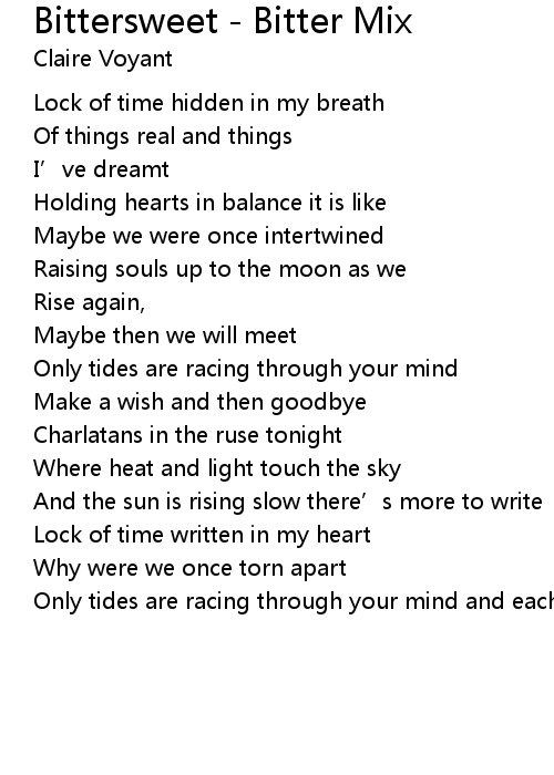 | Only tides are racing through your mind and each time we meet it' s bittersweet |