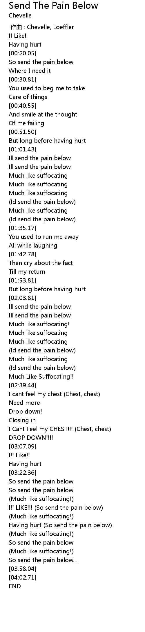 | [03:36.61] | I!! LIKE!!! So send the pain below |
