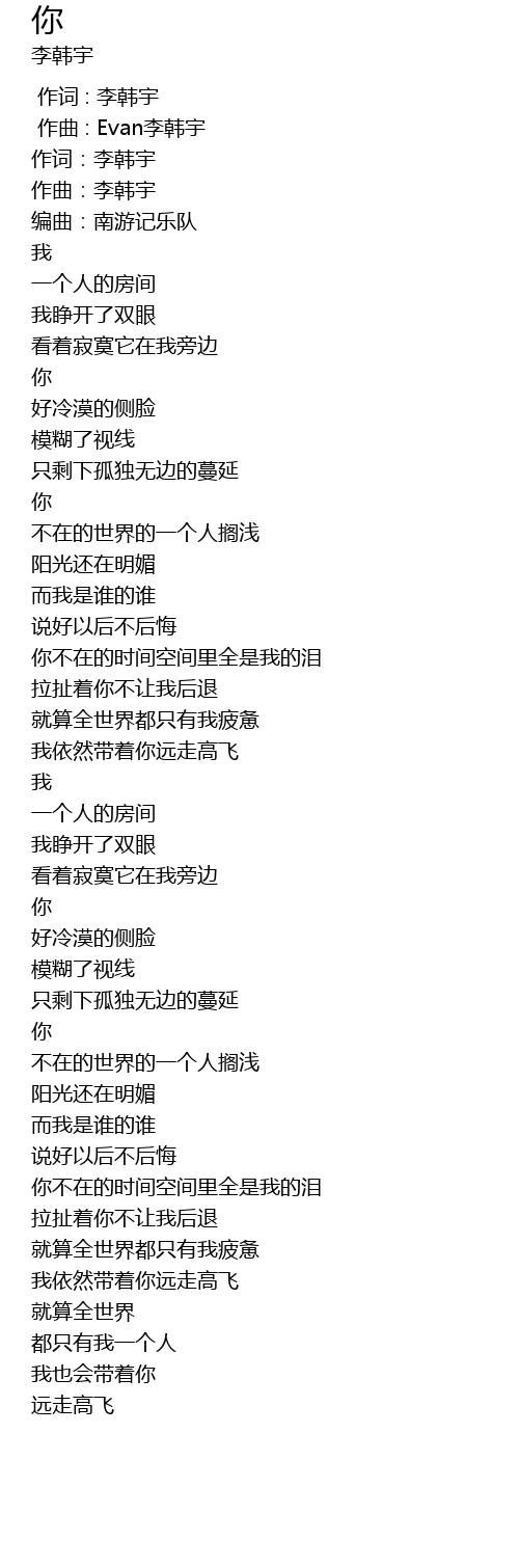 | [00:00.000] | 作词 : 李韩宇 |