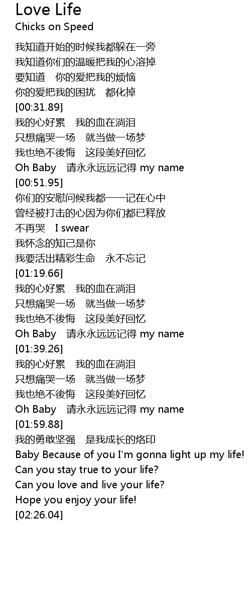 | [01:33.35] | Oh Baby qing yong yong yuan yuan ji de my name |