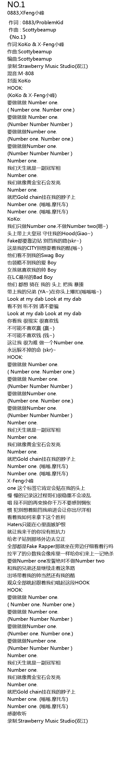 | [00:38.360] | 我们只做Number one.不做Number two(嗯~) |
