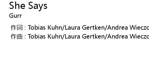 | [00:00.000] | 作曲 : Tobias Kuhn/Laura Gertken/Andrea Wieczorek |
