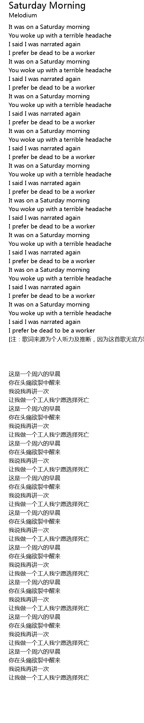 | [01:32.84] | I prefer be dead to be a worker |