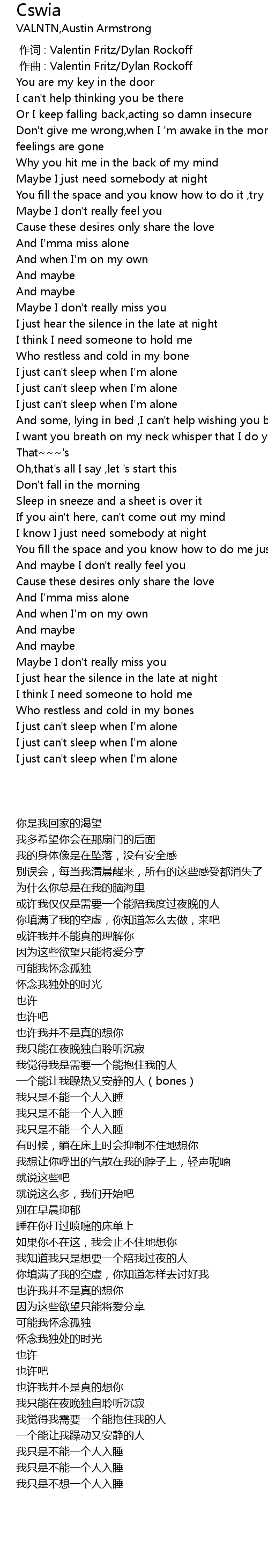 | [01:45.18] | 我知道我只是想要一个陪我过夜的人 |