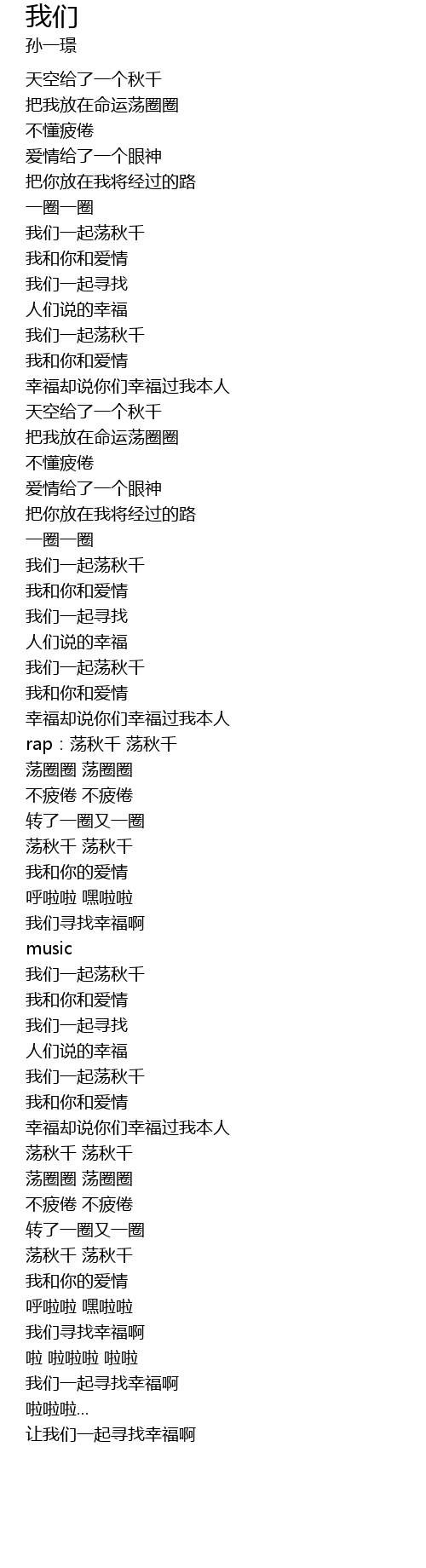 | [01:39.41] | wǒ men yì qǐ dàng qiū qiān |