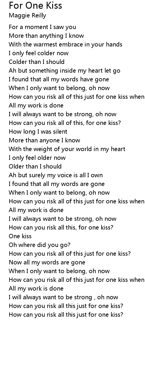 How can you risk all of this just for one kiss when |