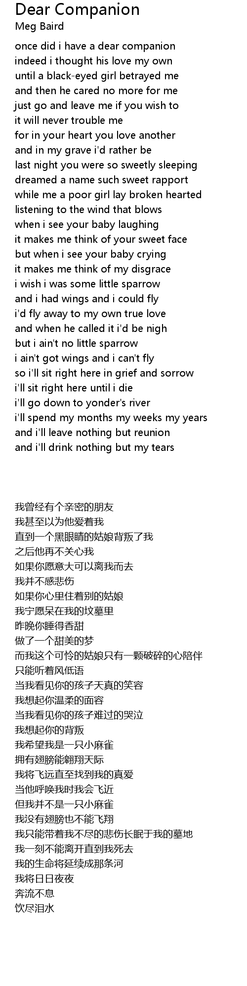 once did i have a dear companion |