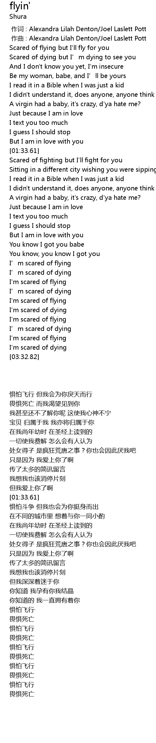 | [00:17.24] | Scared of flying but I'll fly for you |