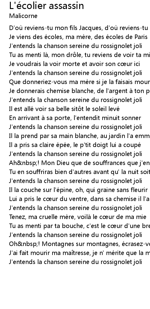 | D' où revienstu mon fils Jacques, d' où revienstu cette nuit nbsp? | |