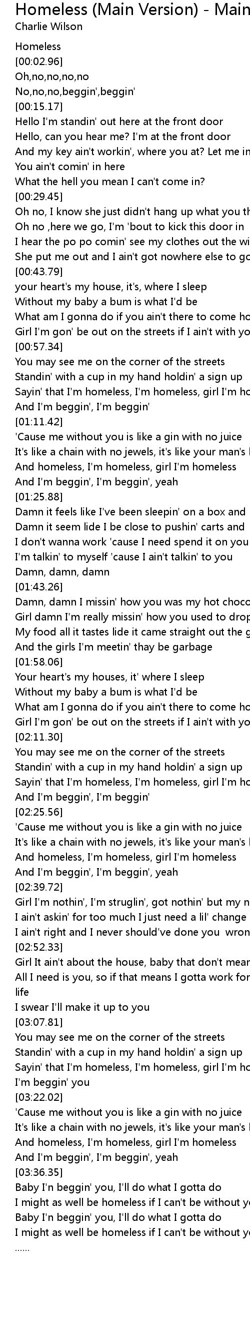 [01:18.78] And homeless, I'm homeless, girl I'm homeless