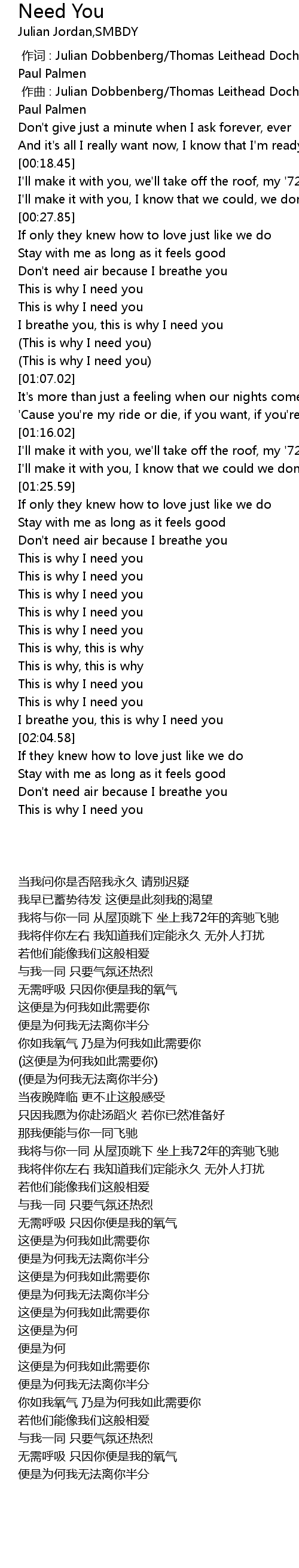 | [02:01.87] | I breathe you, this is why I need you |