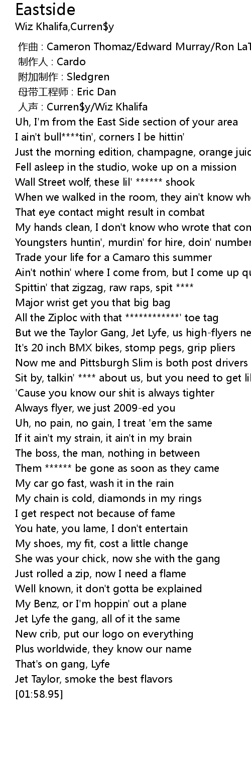 | [00:59.34] | Sit by, talkin' **** about us, but you need to get like us |