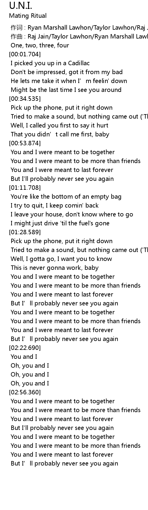 | [00:00.000] | 作词 : Ryan Marshall Lawhon/Taylor Lawhon/Raj Jain |