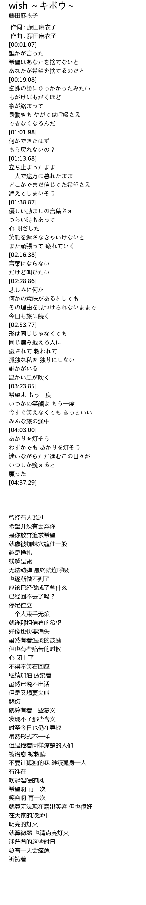 | [00:00.000] | 作词 : 藤田麻衣子 |