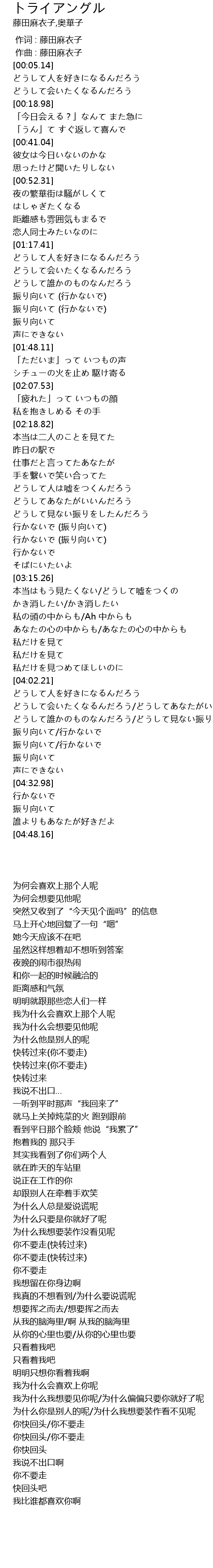 | [04:08.14] | どうして会いたくなるんだろう/どうしてあなたがいいんだろう |