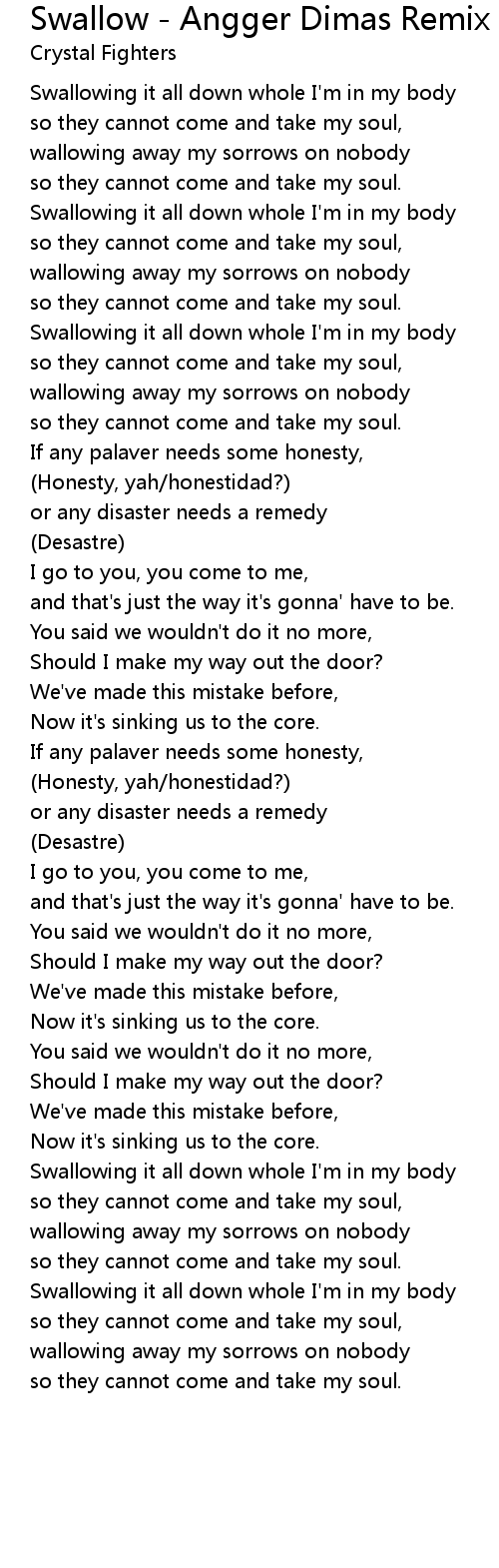 Swallowing it all down whole I'm in my body |