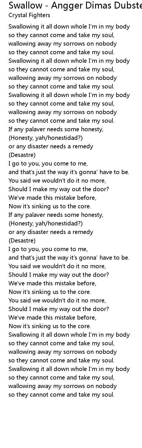 Swallowing it all down whole I'm in my body |