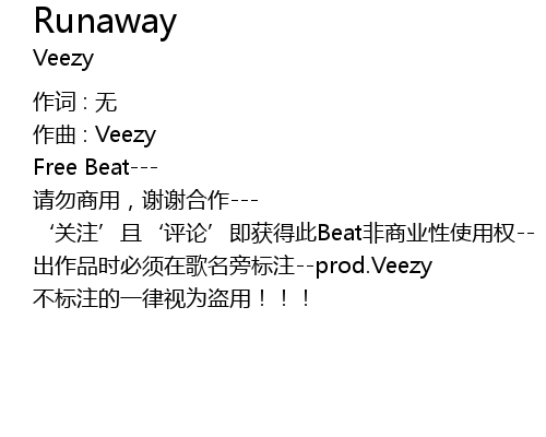 | 出作品时必须在歌名旁标注--prod.Veezy | |