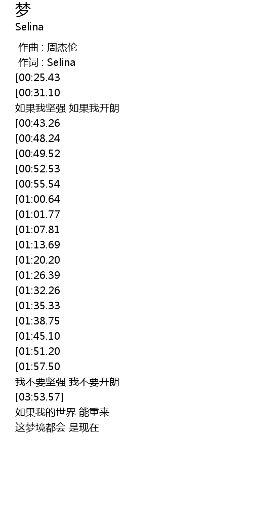 | [00:01.00] | 作词 : Selina |