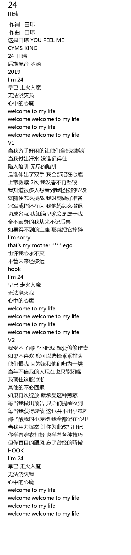 | [02:30.077] | welcome welcome to my life |