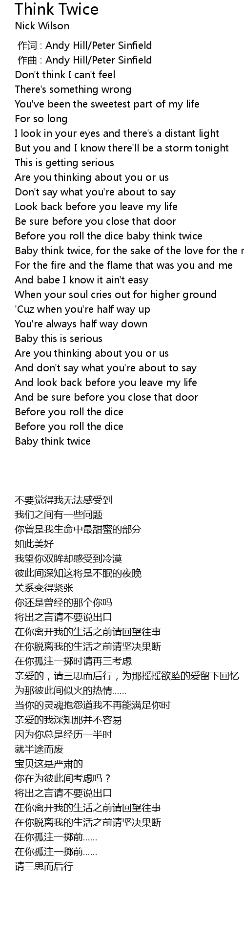 | 歌曲 | Think Twice |